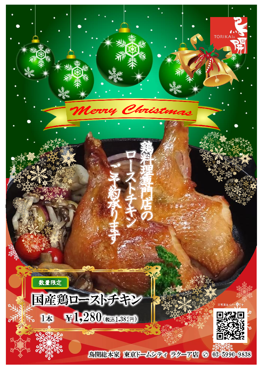 クリスマスローストチキン販売開始のお知らせ