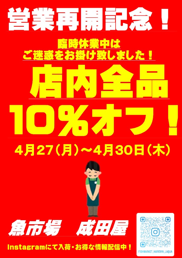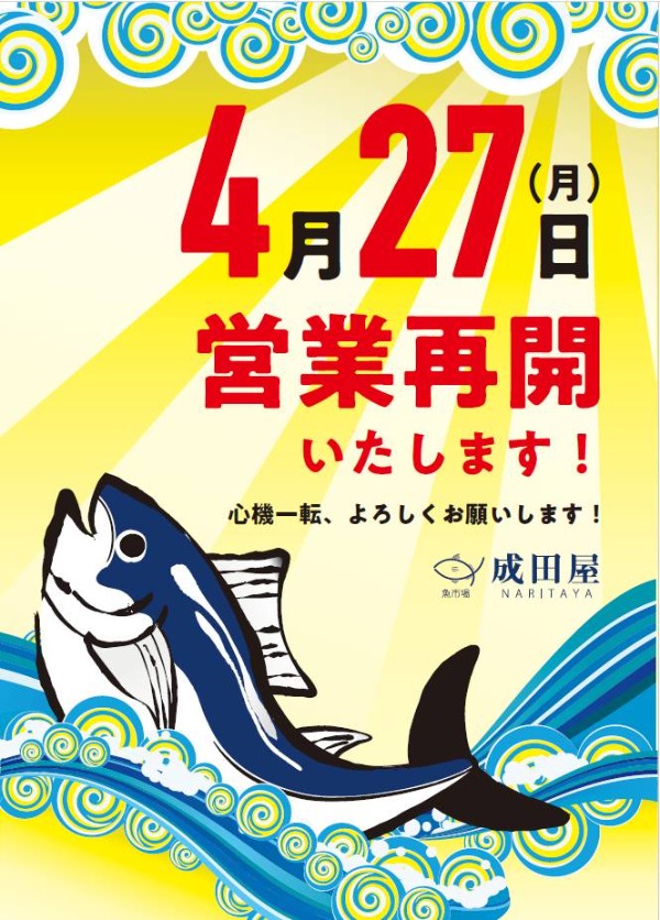 4/27(월) AM10:00~부터 영업 재개하겠습니다.