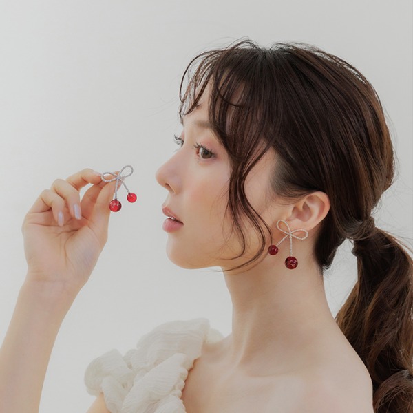 원본으로 그려낸 체리 프린트를 입힌 큰 리본이 눈을 끕니다.