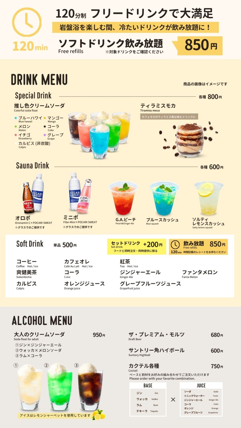 청량 음료와 조합을 즐길 수있는 칵테일 등 알코올도 풍부하게 준비하고 있습니다.