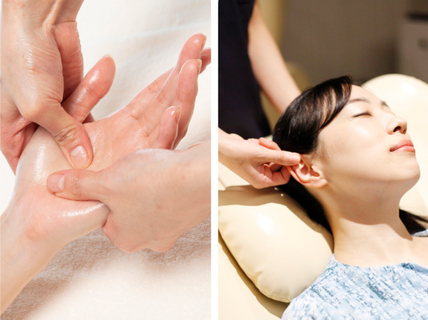 足、手、耳、頭をほぐし、身体の巡りを整えながら