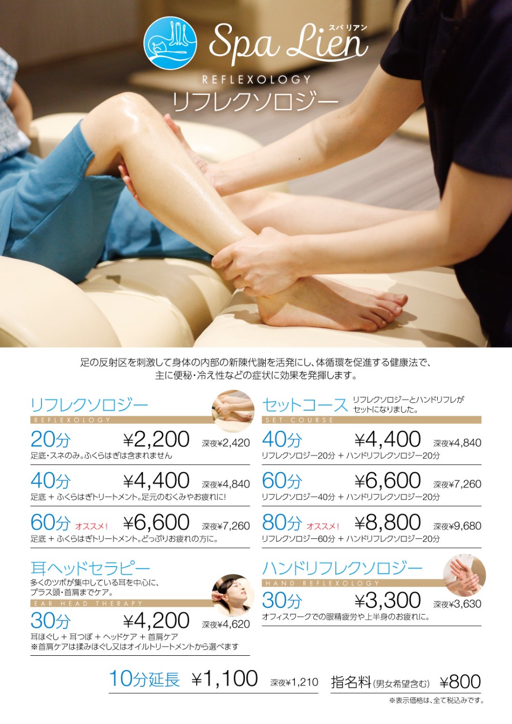 또한, 발바닥의 반사구를 고루 자극하는 풋 케어나 귀 주위를 중심으로 자극하는 이어 리플렉스도 인기입니다!