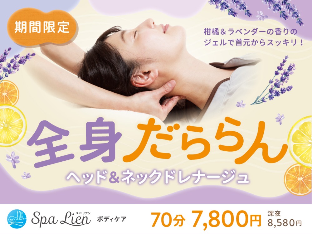 予告【ボディケア】全身だららんヘッド&ネックドレナージュ