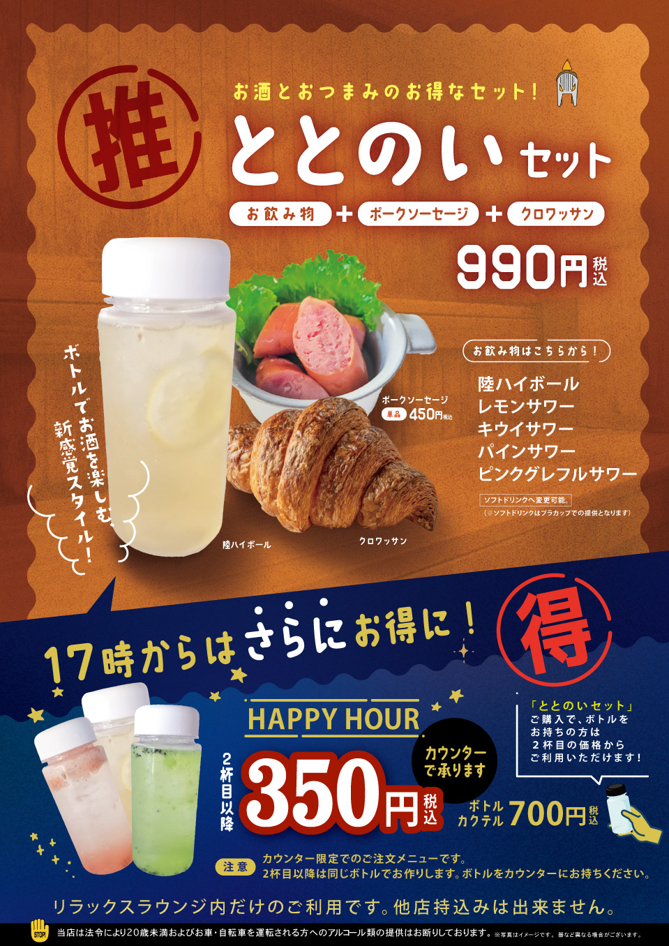 · 정리 세트 990엔 (병 칵테일, 돼지 소시지, 크로와상)