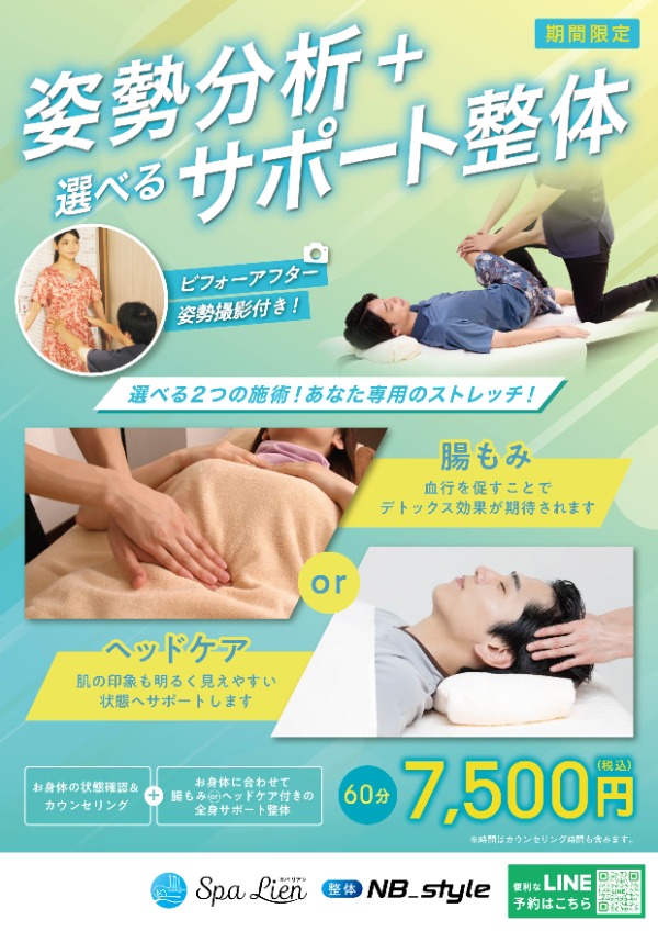 자세 분석 + 선택 가능한 복부 마사지 또는 헤드 케어