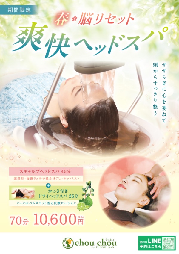 봄 한정의 호화스러운 헤드 스파. 평소의 수고도 가볍게!