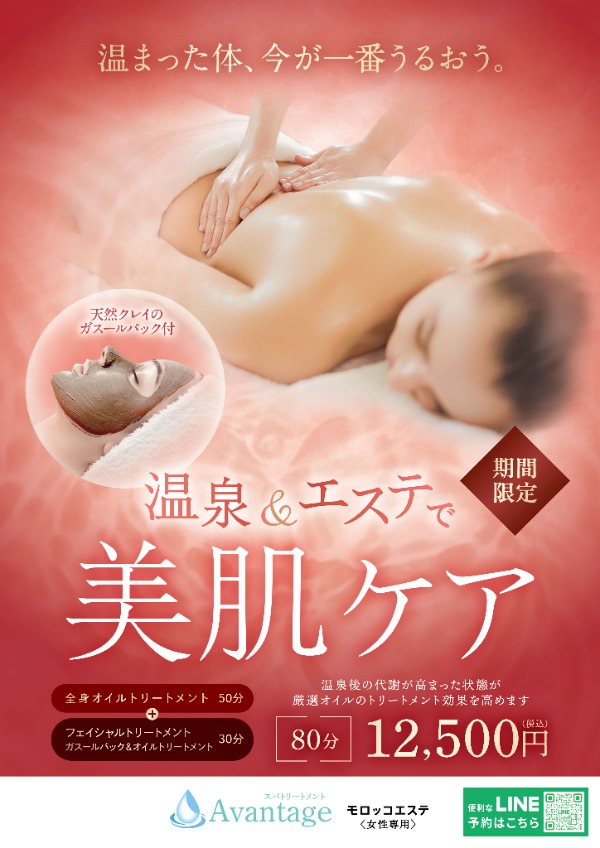 【モロッコエステ】温泉&エステで美肌ケア