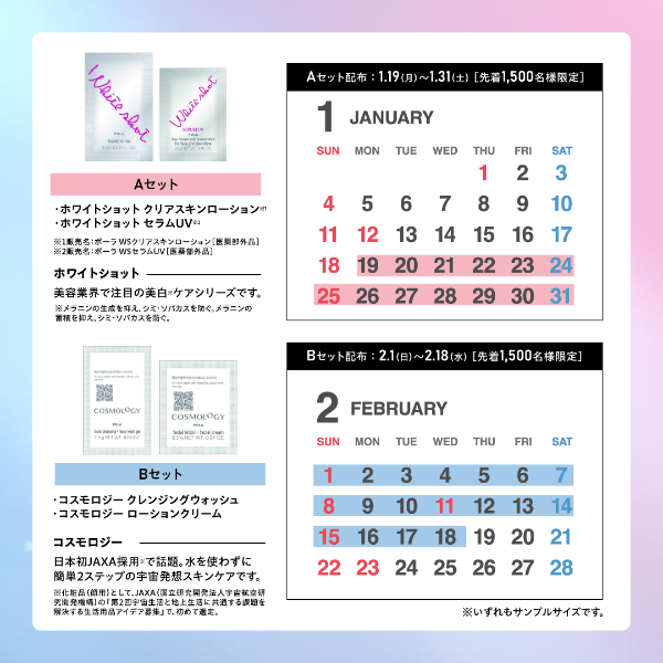 ★노벨티로서 폴라의 신상품 「화이트 샷」이나 「코스몰로지」의 샘플 세트를 선물!