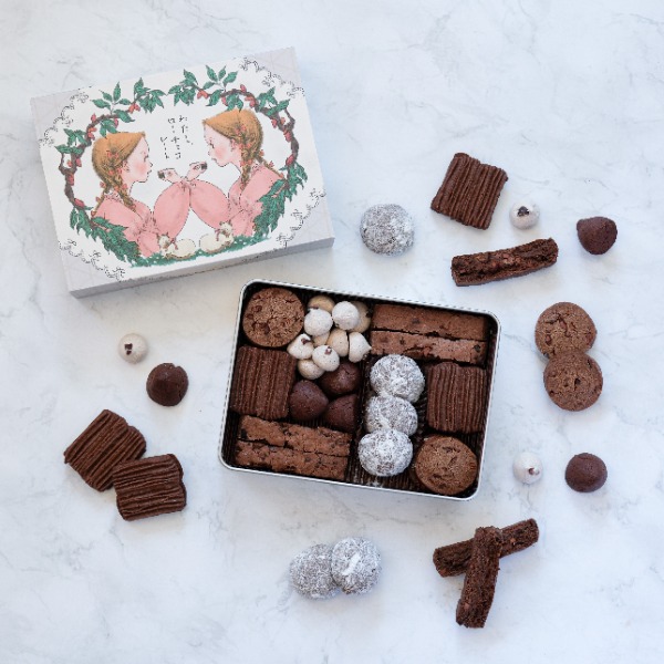 材料に低温処理で抽出したカカオニブを使用しておりますので、カカオの風味が口いっぱいに広がります。クッキー。ブールドネージュ、メレンゲ、ビスコッティなど6種が入ったっクッキー缶になります。
