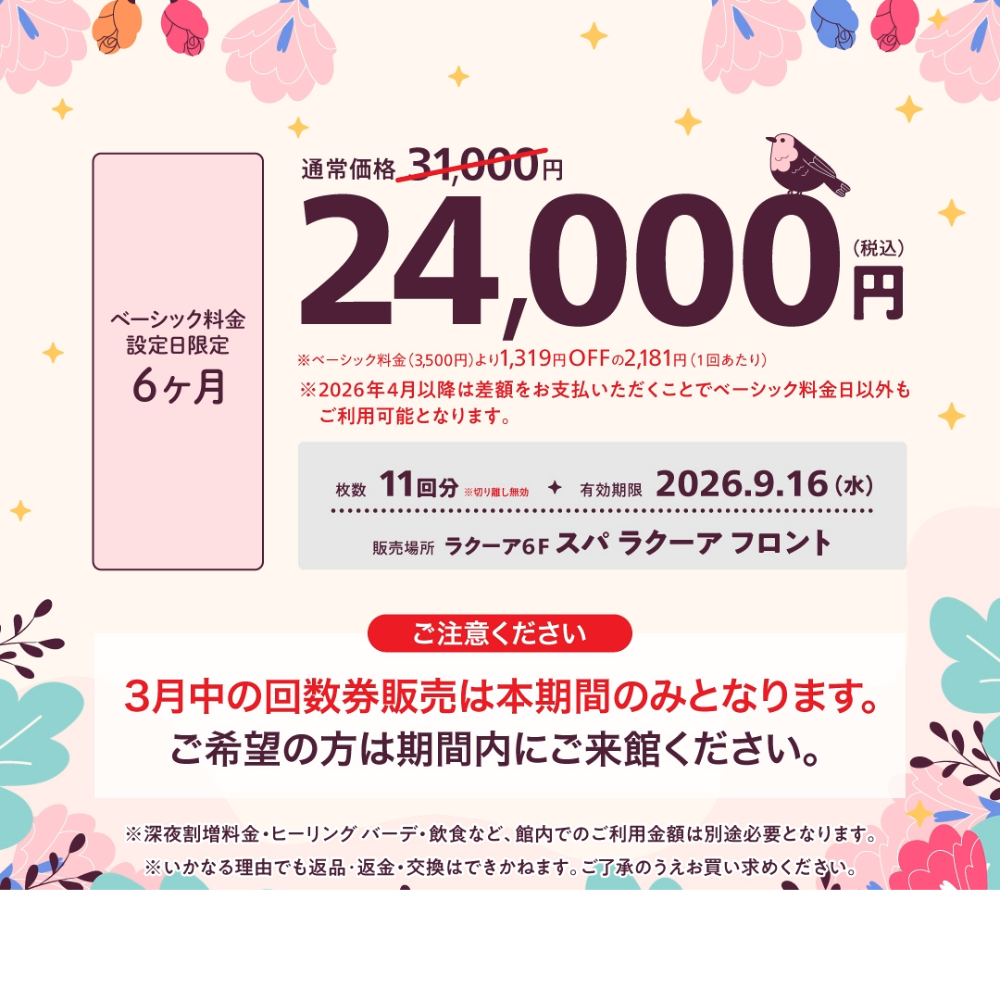 \ 베이직 요금 설정일 한정 입장권(11장 묶음·6개월)/